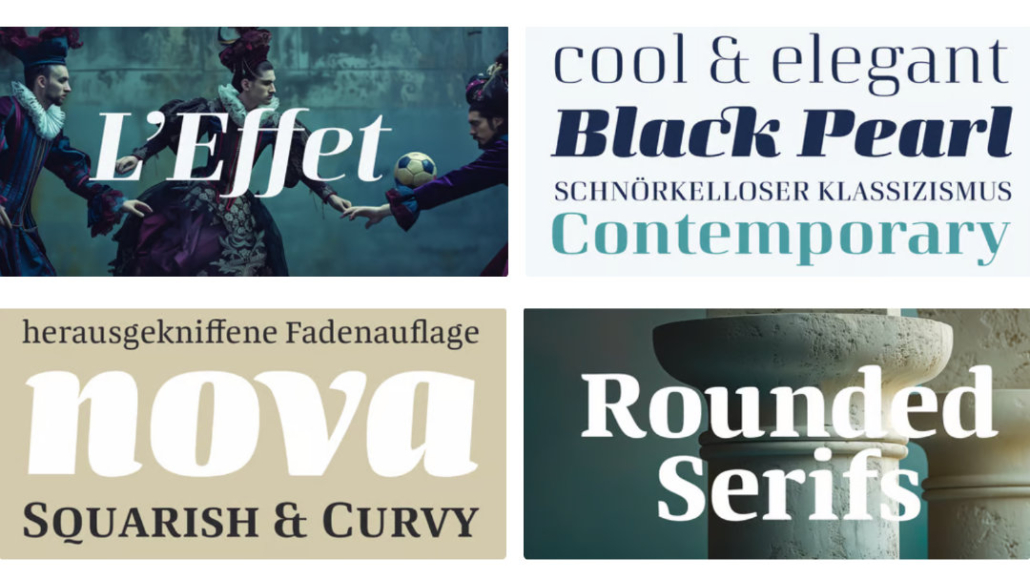 Slab Serifs besitzen kräftige, blockartige Serifen. Sie wirken stabil, markant und selbstbewusst. In der Werbung werden sie häufig für Headlines eingesetzt, da sie Aufmerksamkeit erzeugen, ohne verspielt zu wirken.
